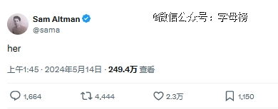 奥特曼自己也在X上发了这部电影的名字:her。还有人干脆把电影海报里的脸换成了奥特曼的。