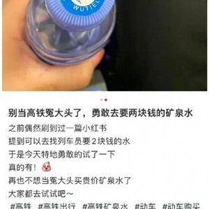 近日,有网友发帖称,“乘坐高铁可以找列车员要2元钱的矿泉水,再也不用买贵价矿泉水了。”