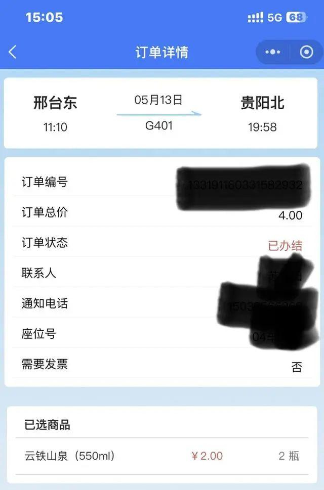 原来高铁上是有2元矿泉水的!12306客服回应