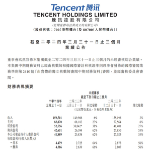此外,微信及WeChat的合并月活跃账户数为13.59亿,同比增长3%。QQ的移动终端月活跃账户数为5.53亿,同比下降7%。