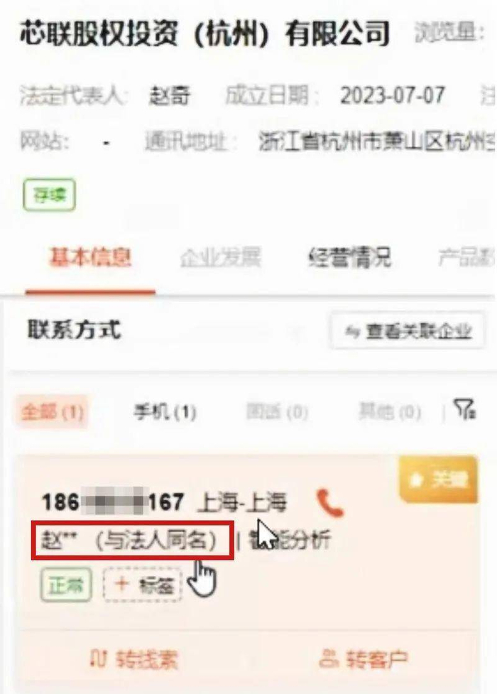 “这叫规避法律风险,我们不能展示全名,展示全名侵犯个人隐私。”该人员解释,“但我们打了标签‘与法人同名’。”