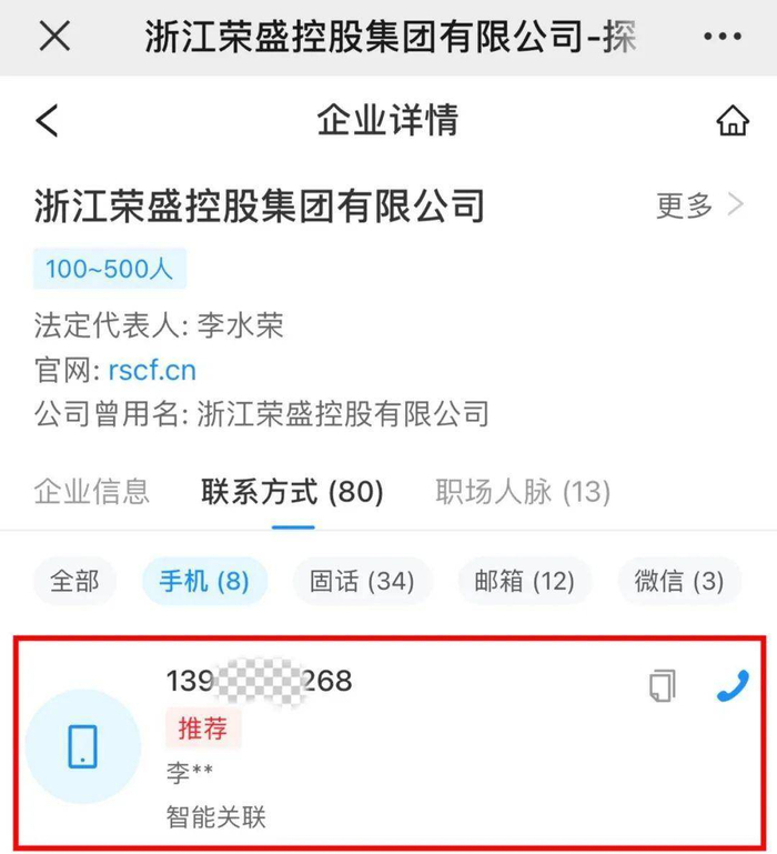 具体到上述企业,吕泽华、赵奇号码来源为“智能分析”,李明顺、冯国华的号码来源为门户网站。