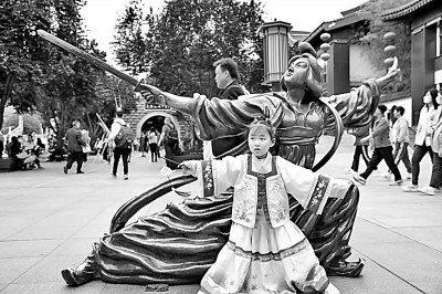 不同于到一些地方旅游是为游山玩水,游客到西安旅游更多是为感受历史、体验文化。作为一种从古代传承至今的服饰,汉服一头连接着历史,一头连接着当下。游客穿上汉服,仿佛就跟历史建立了一种联系——至少会对游客产生这样的心理暗示。所以,汉服不仅仅是用来烘托气氛的衣服,还是一种历史和文化的象征。游客们踊跃穿上汉服,反映了他们对历史和文化的热情。