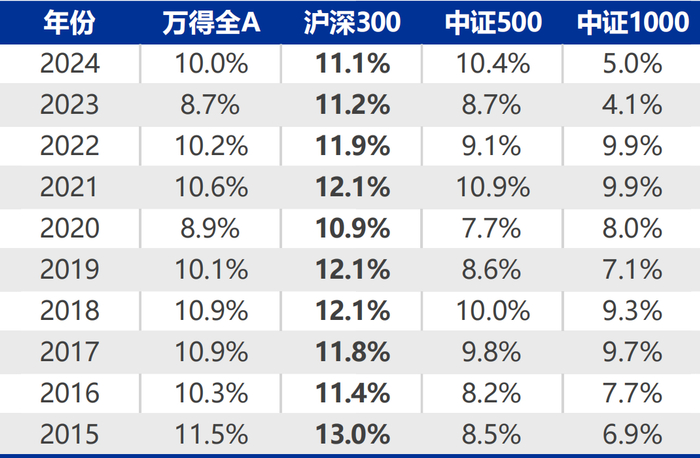 Wind数据显示,近10年沪深300指数的ROE持续高于全部A股的平均水平,显示出较强的盈利能力。