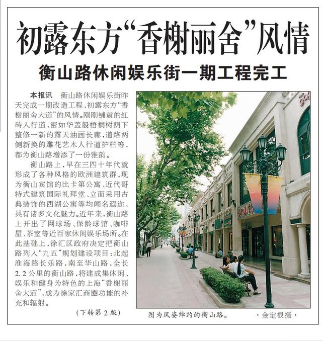 1999年7月10日,解放日报头版刊登衡山路休闲娱乐街建设情况