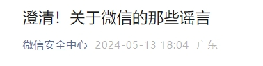 5月13日,微信安全中心发布关于微信谣言的澄清。