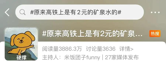 冲上热搜!12306客服回应“高铁有2元矿泉水”