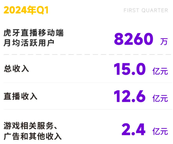 而腾讯走到这一步,并非没有预兆。在此之前,腾讯游戏的直播权主要落在虎牙、快手等与之关系密切的平台。但是近两年,虎牙的直播收入已经开始持续下滑,2023年,公司的直播收入为64.5亿元,同比下降21.3%,而根据最新的财报数据,今年一季度,其直播收入为12.6亿元,较上年同期的18.6亿元同比下降32.3%。抖音的入局对赛道格局的影响,已经开始体现在虎牙的业绩中。