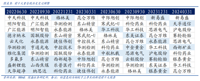 指数前十大成分股名单变化较频繁,指数增强方法跟踪指数的发挥空间较大。从指数成分股前十大重仓股历史变迁频率来看,每个季度前十大重仓股均有较大程度的变化,这也表明该指数的跟踪难度较大,采用指数增强的量化方法进行跟踪能够有较大的发挥空间,从而更为准确的把握成分股的频繁变化。