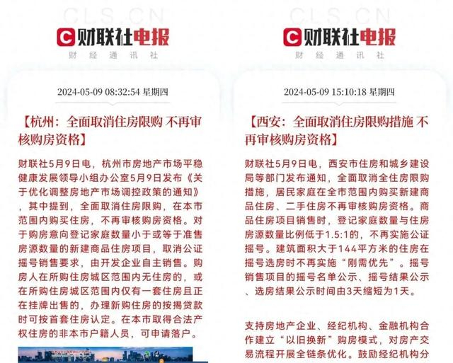 5月9日,杭州、西安同时官宣全面取消限购。多地政策不再遮遮掩掩,高层救市决心明确,房地产彻底明牌!
