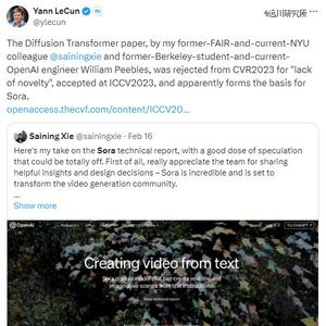 例如震撼世界的Sora,更多是改良并发扬了谷歌提出的技术路线。去年,Sora的基础论文《Scalable diffusion models with transformers》,甚至因“缺乏创新”而被*人工智能学术会议CVPR拒收。