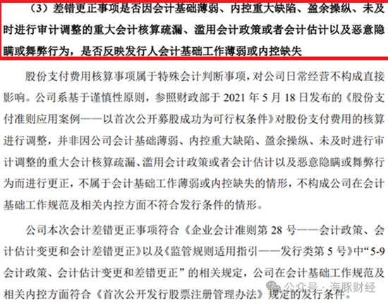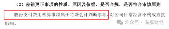 海豚财经注意到,佳驰科技在回复函中将上述股份支付费用核算错误定性为“特殊会计判断事项”,并认为“对公司日常经营不构成直接影响”。