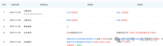 企查查显示,张东2019年11月才开始担任成都云峰广德的执行董事兼总经理。工商变更记录也显示,张东与妻子李娟2019年11月进入成都云峰广德,此前这家公司的总经理为王进,监事为张敏。