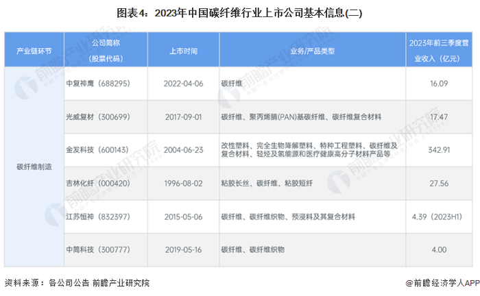 2、碳纤维行业上市公司基本信息对比