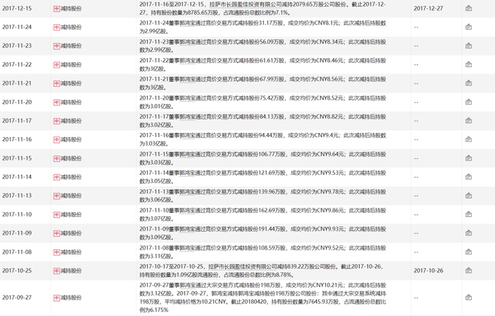 但这次郭鸿宝并未选择再找下一个风口。wind数据显示,2017年9月至2018年9月,郭鸿宝等股东频繁减持,套现数亿元。