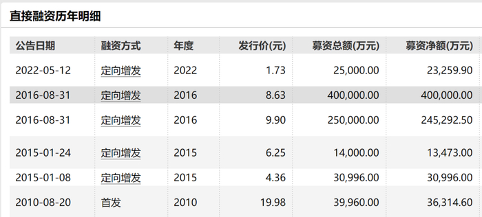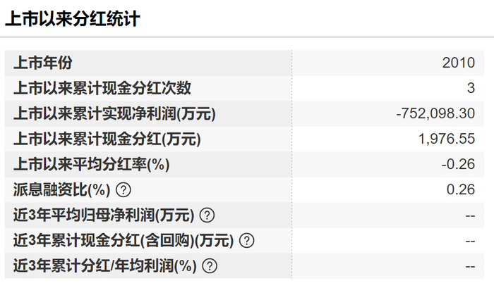 wind数据显示,*ST保力累计直接股权融资约72亿元。上市以来共亏损近75亿元,累计现金分红不到2000万元。