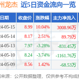 5月15日的资金流向数据方面,主力资金净流入3008.96万元,占总成交额28.06%,游资资金净流出1449.9万元,占总成交额13.52%,散户资金净流出1559.06万元,占总成交额14.54%。