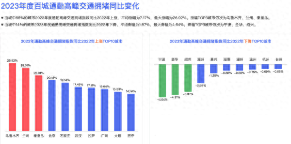 去年城市通勤高峰交通拥堵指数降幅最大十城,浙江占八席