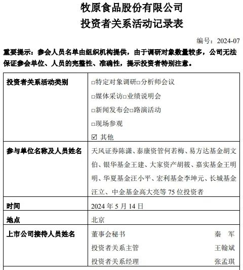 5月15日,上市猪企牧原股份发布最近一期投资者关系活动记录表。牧原股份表示,2024年4月,公司生猪养殖完全成本为14.8元/kg,断奶仔猪成本降至300元/头左右。此外,牧原股份还就成本下降路径,屠宰肉食业务规划,以及对生猪市场的展望等问题进行了回答。