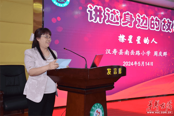 优秀教师代表周庆群讲述身边的故事,将自己比作“擦星星”的人,分享了她在教育过程中的心得体会,希望老师们用爱心和耐心去教育每一个学生,把学生变成璀璨的星星。