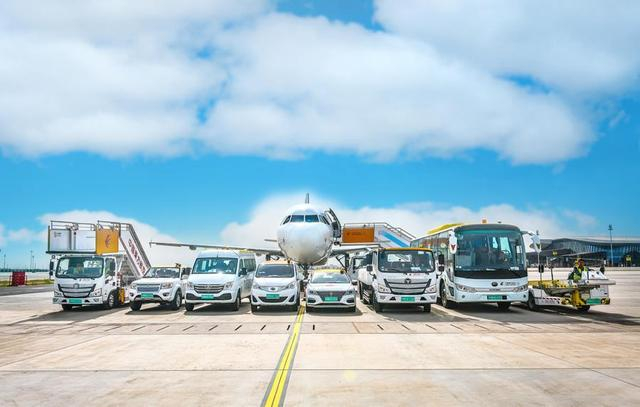 机坪上的车辆全换成了绿牌。