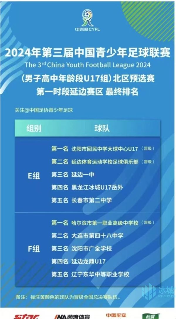 13日,2024年第三届中国青少年足球联赛(男子高中年龄段U17组)北区预选赛第一时段比赛全部结束,哈尔滨市第一职业高级中学校足球队在延边赛区比赛中获得F组小组第一,成功晋级全国总决赛(32强)。