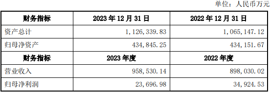 公告披露,上海集优2022年营业收入89.80亿元,实现归母净利润3.49亿元;2023年营业收入95.85亿元,同时归母净利润2.37亿元。