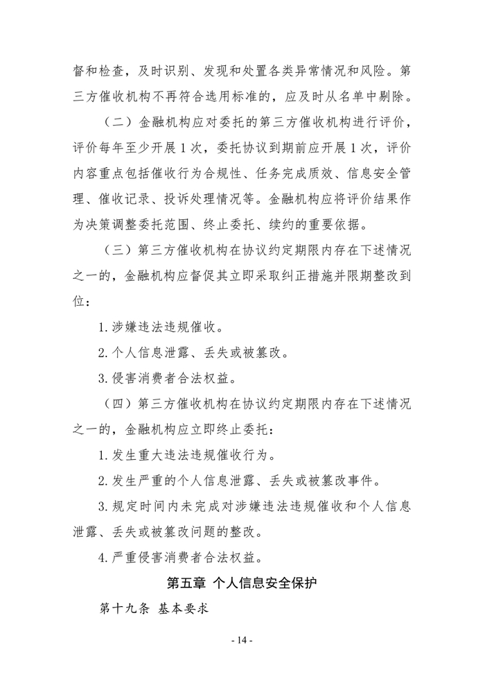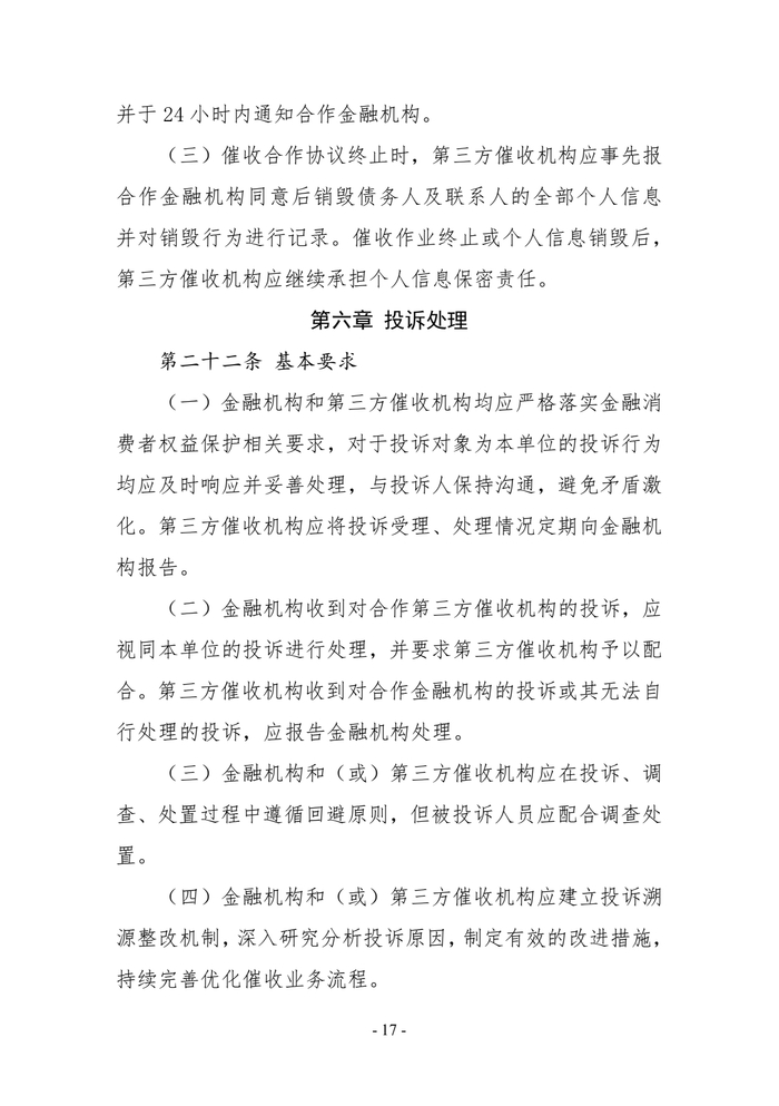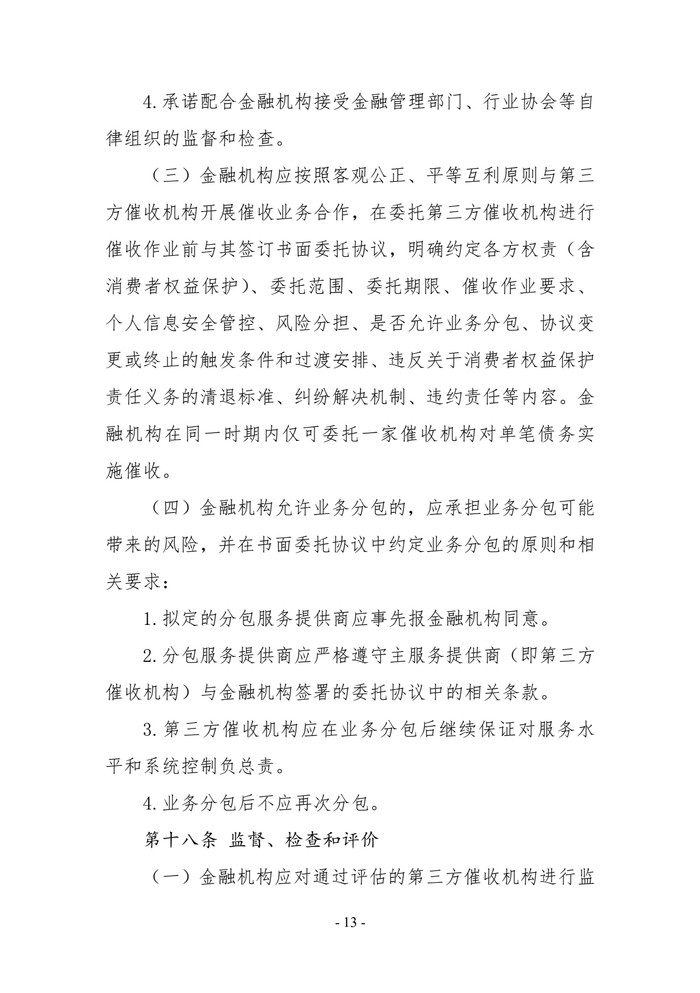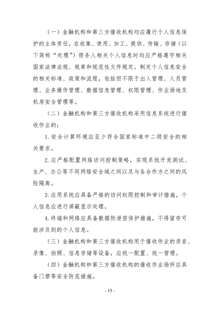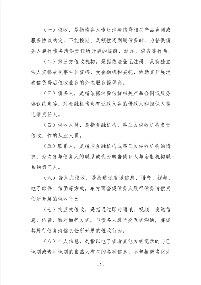 一、商业银行、消费金融公司、小额贷款公司、汽车金融公司等从事放贷业务的机构(以下统称“金融机构”)自行开展或委托第三方催收机构开展个人网络消费信贷贷后催收业务。