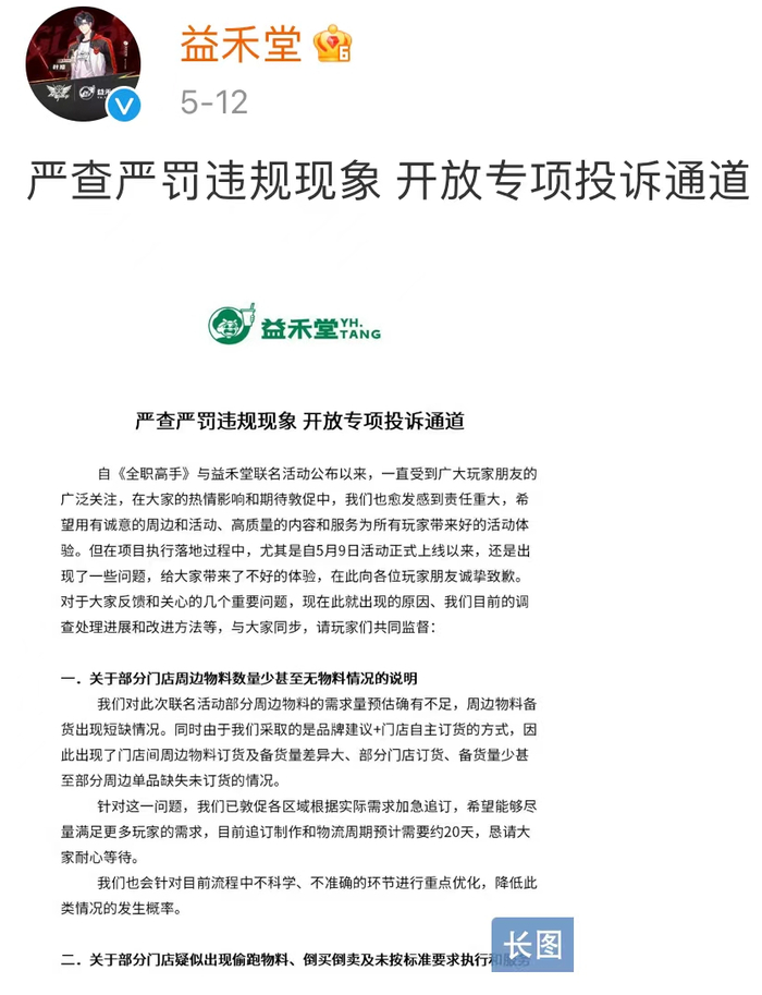 益禾堂相关负责人对记者表示,由于预估准备不足,对于许多玩家的意见和反馈没能及时回复和响应。目前已开通专项投诉通道,邀请各位玩家共同监督。今后也会针对目前流程中不科学、不准确的环节进行重点优化,降低此类情况的发生概率。
