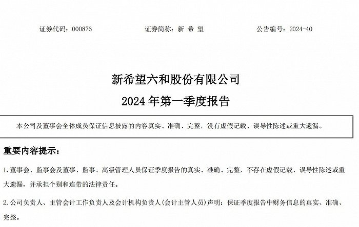 4月30日,新希望公布了2023年度和2024年一季度经营答卷,数据表现依然不甚理想。