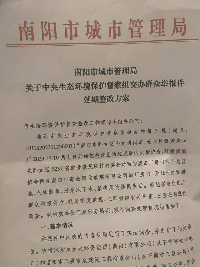红星新闻记者获取的一份文件显示。2月19日,南阳市生态环境局卧龙分局就上述媒体报道内容向河南省生态环境厅、第五生区域督察办发去情况报告。