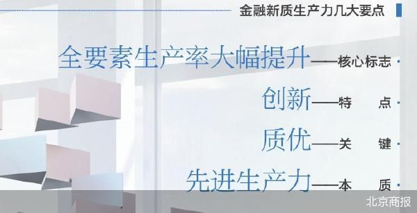 新时代下,新质生产力成为经济社会转型升级和提升国际竞争力的重要推动力、支撑力。为厘清新质生产力核心要素,探寻行业和实践路径,北京商报从实用性角度提出多个问题,国内机构如何认知新质生产力发展要点?哪些典型行业及应用路径可重点关注?金融行业如何寻找自己的新质生产力,如何破局当前短板?未来新质生产力的发展趋势是什么?结合现有国内政策、国际标准以及来自毕马威中国、马上消费研究院学术观点,我们尝试给出建议。