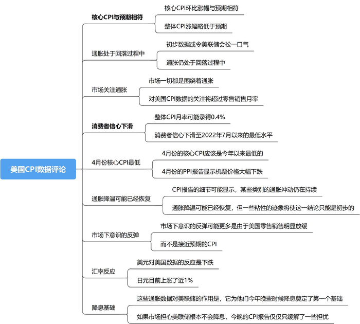 美国4月CPI升幅低于预期,表明通胀在第二季度初恢复下行趋势,提振了金融市场对9月降息的预期。核心CPI月率出现6个月来首次降温,表明价格压力正在逐渐减弱,并支持了美联储在更长时间内保持较高利率的意图。