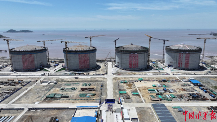 洋山深水港LNG新建储罐全部封顶,洋山港海事局保障LNG站线扩建项目建设取得阶段性进展