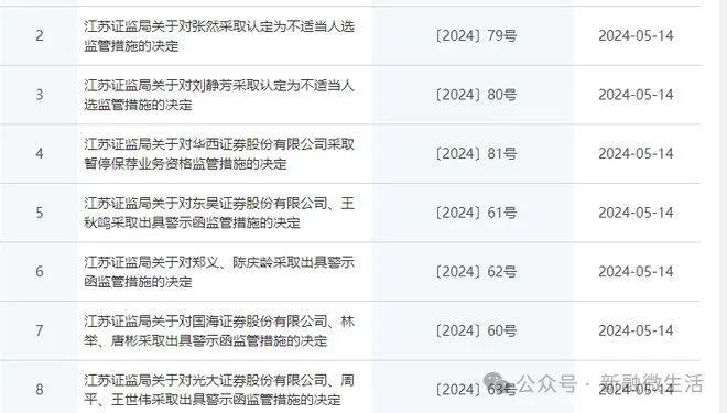 江苏证监局今日下发7张罚单,事涉金通灵财务造假案,“看门人”光大证券(601788.SH)、华西证券(002926.SZ)、东吴证券(601555.SH)、国海证券(000750.SZ)被罚,9名券商员工受到不同程度处罚。