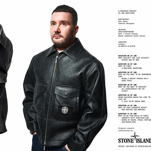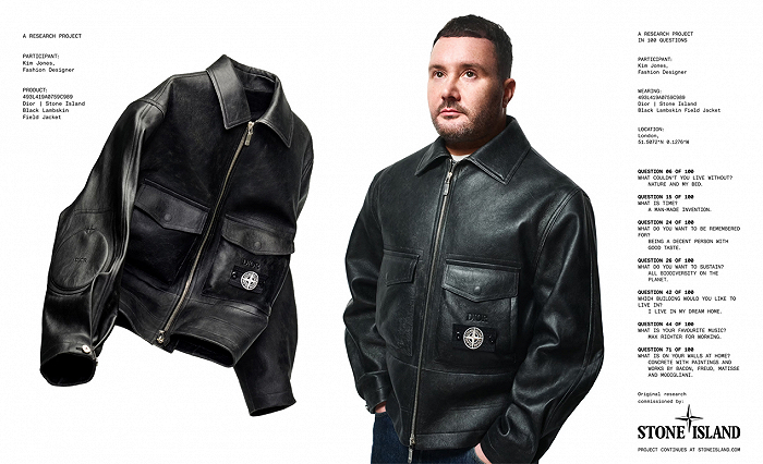Dior与Stone Island带来联名胶囊系列。Dior男装创意总监Kim Jones穿着该系列中的一款黑色羊皮户外夹克,出镜本系列广告大片。