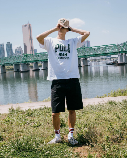 两座城市在本次合作系列中的相遇也反映了当下韩国城市文化与全球时尚正在不断融合的现状,极具象征意义的印花被放置在T恤胸前和帽子上。Polo Ralph Lauren标志性的马球Logo也没有缺席,在T恤后领处以及渔夫帽上均有体现。