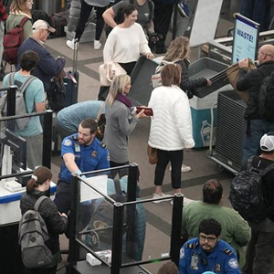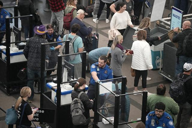 2023年11月20日,旅客在美国科罗拉多州丹佛国际机场排队通过安全检查站。(视觉中国)