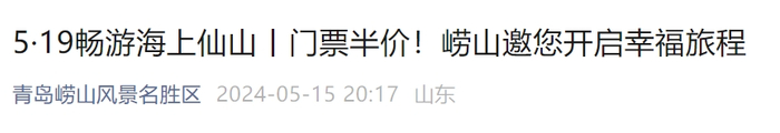 崂山风景区官宣:这两天,所有游客半价!