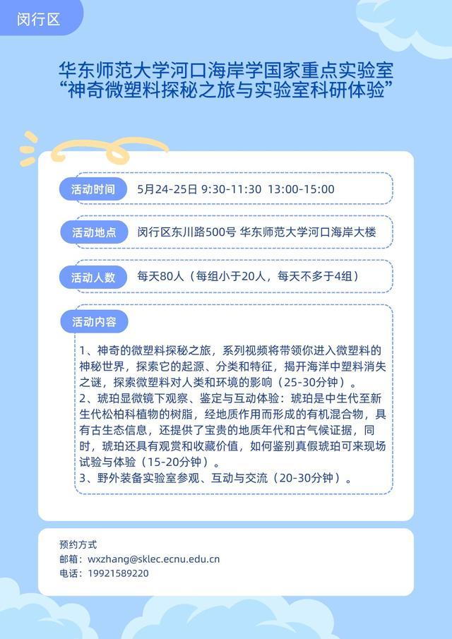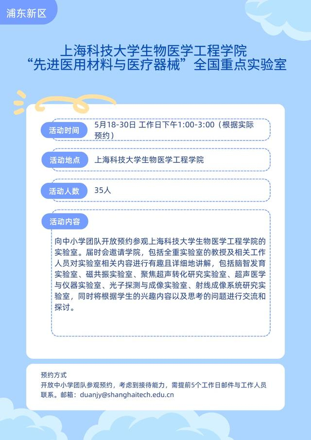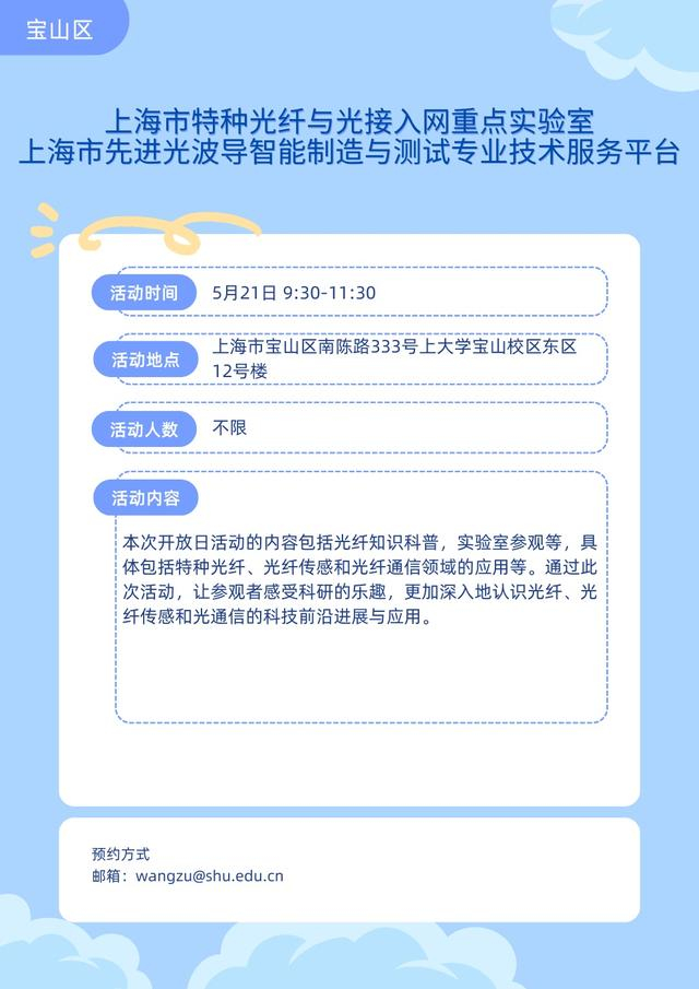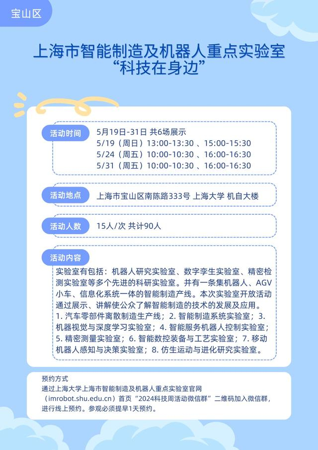 限量预约!上海科技节期间,多家重点实验室对外开放 媒体滚动 2024.05.16 11:31 转自:上观新闻据市科委介绍,5月18—31日上海科技节期间,我市多家重点实验室对外开放,并举办主题活动,可预约参观,实验室接待能力有限,机会难得,先报先得,详见↓ *具体以各实验室实际开放情况为准编辑:邱彩红