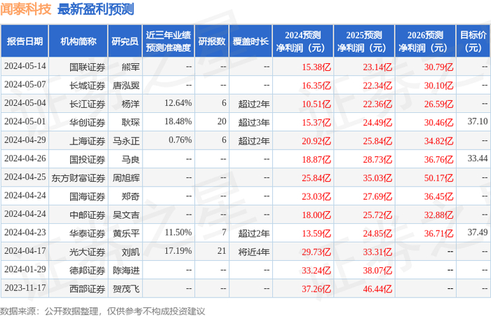 证券之星数据中心根据近三年发布的研报数据计算,华创证券耿琛研究员团队对该股研究较为深入,近三年预测准确度均值为18.48%,其预测2024年度归属净利润为盈利15.37亿,根据现价换算的预测PE为25.04。