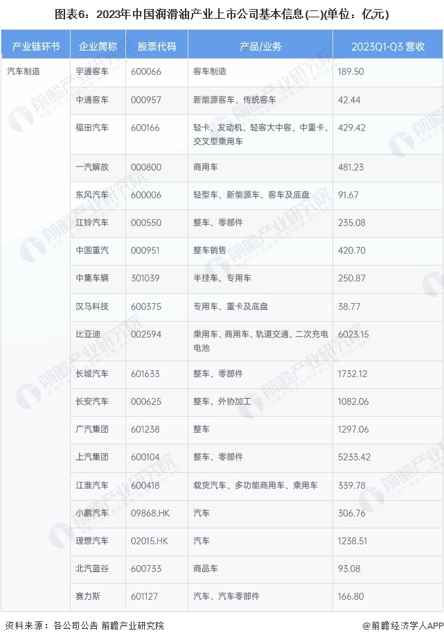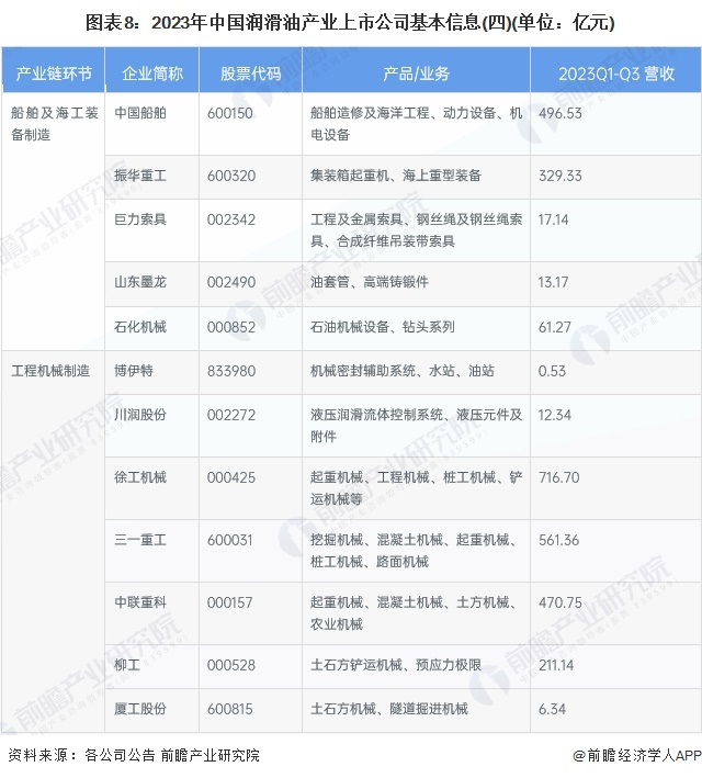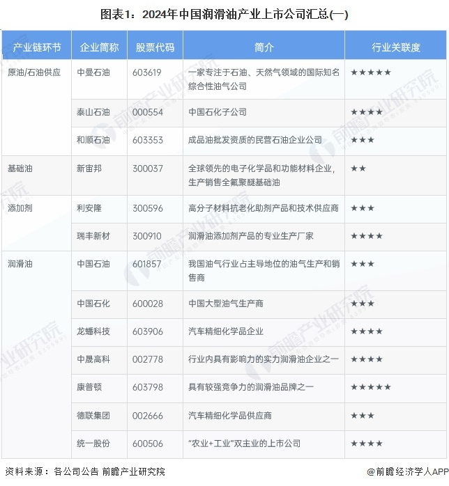 1、润滑油行业产业链上市公司汇总