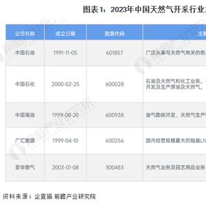 “十三五”以来,我国天然气产供储销体系建设稳步推进,天然气储产量快速增长,“全国一张网”基本成型。天然气开采的上市公司包括:中国石油(601857)、中国石化(600028)、中海油(00883HK)、广汇能源(600256)等。因存在严格的行政准入门槛、资金门槛和技术门槛等,目前,我国天然气开采企业的数量不多,主要公司包括:中国海油、中国石油和中国石化等。