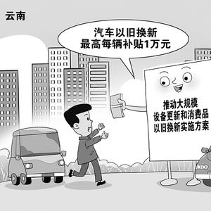 云南近日出台措施,明确汽车以旧换新最高每辆补贴1万元。朱慧卿 作