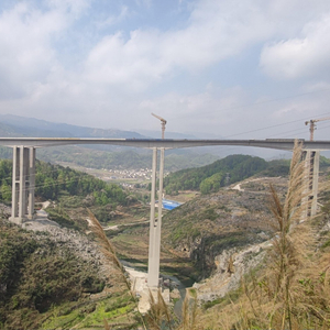 贞丰特大桥位于贵州省贞丰县挽澜镇境内,按分幅式设计,其中左幅全长757米、最大墩高143米,右幅全长797米、最大墩高145米。受制于地形条件,在贞丰大桥建设过程中,存在无施工道路、无存梁区的问题,且桥梁横跨挽澜河,夏季汛情风险大。