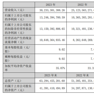 财报显示,泸州老窖2023年全年实现营业收入302.33亿元,同比增长20.34%;实现归属于上市公司股东的净利润132.46亿元,同比增长27.79%。得益于优异的业绩,泸州老窖拟每10股派发现金红利54元(含税),现金分红金额共79.49亿元(含税)。