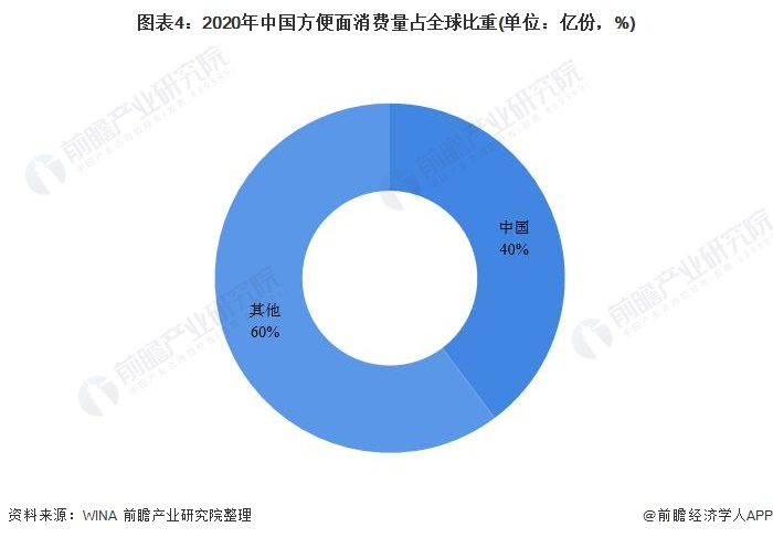 从全球主要国家方便面消费量来看,中国是世界最大的方便面消费国,2020年,我国方便面消费量达463.5亿份,占全球方便面消费量的40%,远远超过了其他国家。