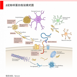 第一,淀粉样蛋白级联假说:这个假说认为β类淀粉样蛋白(Aβ)在脑内沉积,是致病的核心环节,可引发一系列病理过程,并且进一步促进Aβ沉积,从而形成一种恶性放大反应。