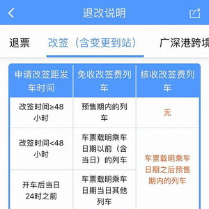 另外,开车后改签的车票不办理退票业务。变更到站必须在开车前48小时以上办理。