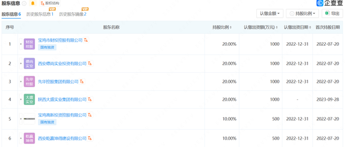 据企查查和公告信息,财华智远成立于2024年5月9日,成立时间只有一周,注册资本仅有100万元;宝鸡市国资委旗下的全资子公司宝鸡市财投控股有限公司持股比例为60%,其余40%股份由先华控股集团有限公司持有。